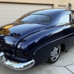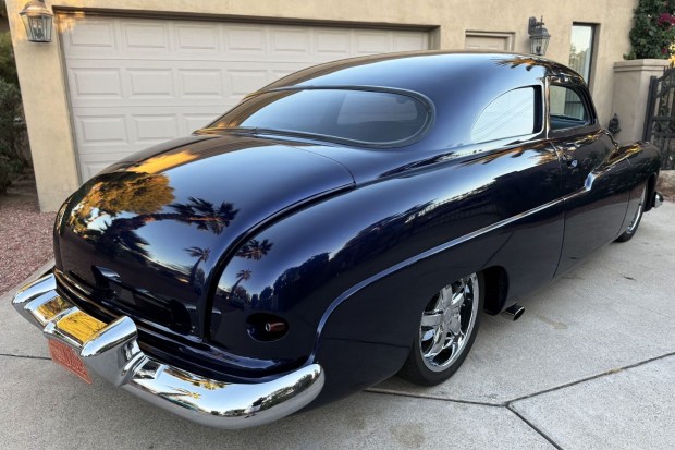 This 1950 Mercury Eight coupe was modified under prior ownership during a build that involved customizing the body with a chopped top, flush door handles, shaved trim, frenched headlights, and tunneled taillights. The interior was outfitted with front bucket seats and a rear bench trimmed in gray along with a center console, a tilt steering wheel, and a digital instrument cluster. The ride height was lowered during the build, and the car is equipped with power steering, power-assisted disc brakes, and chrome 18″ wheels. Power is provided by a 400ci Chevrolet small-block V8 linked to a three-speed au …