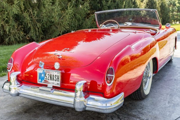 This 1952 Nash-Healey Roadster is one of approximately 500 examples produced between 1951 and 1954 and was previously owned by Carl Chakmakian during his time at Nash. Chakmakian joined Nash in 1953 and remained at AMC after Nash’s merger with Hudson in 1954. During his time with AMC, he would become the manager of AMC’s Performance Activities Department and bring the manufacturer into Trans-Am. In 1958, Chakmakian had this car fitted with a 327ci Rambler Rebel V8, an engine project he helped champion at AMC. The car is finished in red over tan leather upholstery, and equipment includes a three-speed manual gearbox, an AM Radio, lap belts, a tonneau cover, …