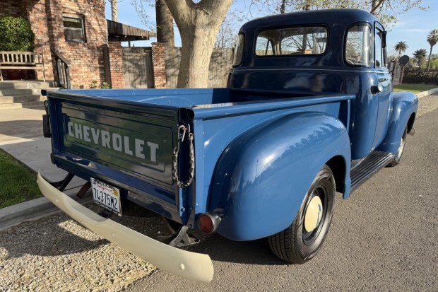 This 1954 Chevrolet 3100 five-window pickup was purchased by the current owner’s late spouse in February 2017 and was subsequently refurbished. The truck is powered by a 235ci inline-six paired with a three-speed manual transmission and is refinished in blue over brown vinyl. Equipment includes 15″ steel wheels, running boards, and a wood-plank cargo bed floor. Work in preparation for the sale involved overhauling the brakes, buffing the paint, and replacing the fuel pump, battery, tires, window felts, and more. This 3100 pickup is now offered by the seller on behalf of the current owner with recent service records, a …