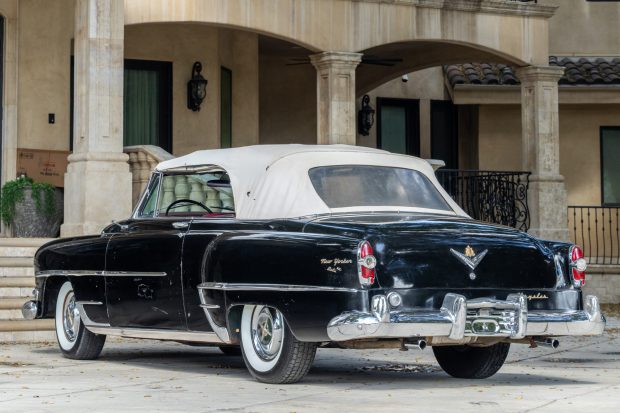 This 1954 Chrysler New Yorker Deluxe convertible is one of 724 examples built for the model year. It is said to have remained with its original owner until 1995, when the car was acquired in California by the person who sold the vehicle on BaT in May 2024 to the seller. The 331ci FirePower V8 received a tune-up since early 2025, and other work conducted under current ownership involved rebuilding the carburetor, powdercoating the valve covers, overhauling the braking system, and cleaning the underside with dry ice. Finished in black with a tan soft top over black and red vinyl upholstery, the Chrysler is equipped with a two-speed automatic transmission, a transmission cooler, wheel covers, whitewall tires, power steering, an AM radio, and a dual exhaust s …