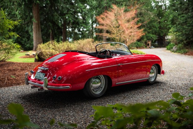 This 1955 Porsche 356 is a pre-A 1500S Speedster that was refurbished under prior ownership and was previously listed on BaT in March 2019. Work has since involved servicing the brakes and replacing the clutch, starter, distributor, ignition wires, fuel lines, and battery. The car is finished in Signal Red over black and is powered by a 1.5-liter flat-four paired with a four-speed manual transaxle. Features include a black canvas soft top, a top boot, 15″ steel wheels, body-color bumpers, headlight grilles, and bucket seats. This Speedster was acquired by the selling dealer in 2025 and is now offered in Washington with a copy of the Kardex, a Reutter Certificate of Production, a Porsche Certificate of Authenticity, service re …