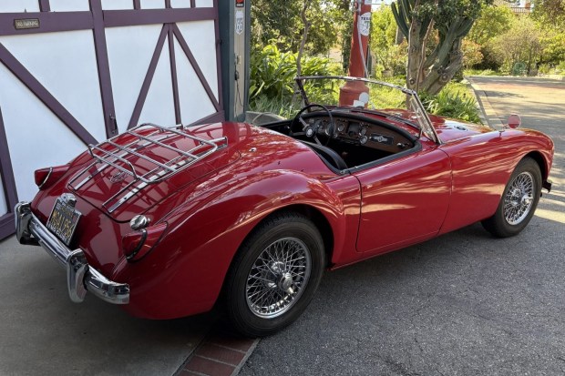 This 1956 MG MGA 1500 roadster was retrofitted with a Judson supercharger kit under previous ownership, and it was owned by American actor Matthew Morrison before it was acquired by the seller in 2015. Subsequent refurbishments included renewing the red paintwork, installing an aluminum radiator and Spal electric cooling fan, and replacing the front shocks and assorted brake components. Powered by a 1,489cc inline-four mated to a four-speed manual transmission, the car has electronic ignition, a black convertible soft top, driving lights, wind wings, leather hood straps, a luggage rack, 15″ knock-off wire wheels, …