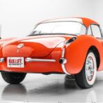 This 1957 Chevrolet Corvette is powered by a 283ci V8 paired with a two-speed Powerglide automatic transmission and was refurbished under previous ownership. The car is refinished in red over red vinyl and equipped with a tan convertible soft top, a Positraction limited-slip differential, bucket seats, an aftermarket stereo, and a twin-cowl dash with a dash-mounted rearview mirror. The current owner acquired the car in 2010, and this C1 is now offered by the selling dealer, a BaT Local Partner, with a car cover, car show awards, and a Florida title.