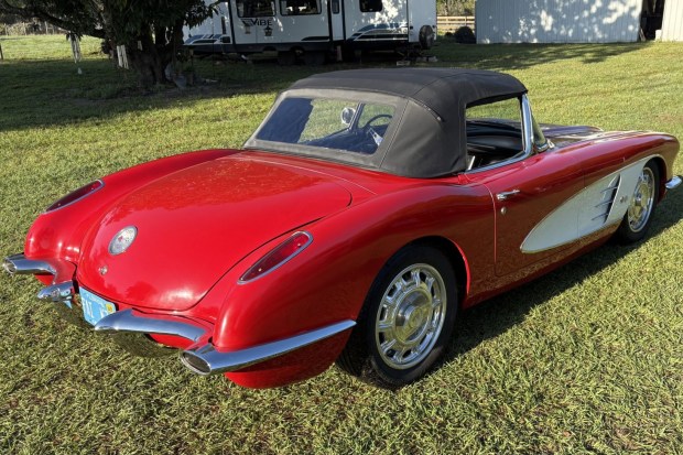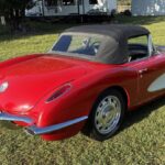 This 1958 Chevrolet Corvette was acquired by the seller in 2020 and has been modified with an LS1, a 4L60E four-speed automatic transmission, an aftermarket chassis, and C4 Corvette front and rear suspension. The car is refinished in red over black and further equipped with a Positraction limited-slip differential, a black convertible soft top, 17″ Curtis Speed wheels, power rack-and-pinion steering, four-wheel disc brakes, Vintage Air air conditioning, a RetroSound AM/FM radio, a Lokar shifter, and Dakota Digital gauges. This modified C1 is now offered with a clean Florida title in the seller’s name.