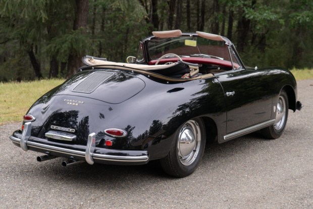 This 1958 Porsche 356A cabriolet was built on August 18, 1958 and delivered new to the US via Hoffman of New York. The car is powered by a replacement 1.6-liter flat-four paired with a four-speed manual transaxle and is finished in black over red leather. Equipment includes a black soft top, 15″ ventilated steel wheels, a driver-side mirror, body-color bumpers, a Blaupunkt radio, and bucket seats. This 356A cabriolet was purchased by the current owner in 2022 and is now offered on their behalf by the seller, a BaT Local Partner, with a copy of the Kardex and a clean California title in the owner’ …