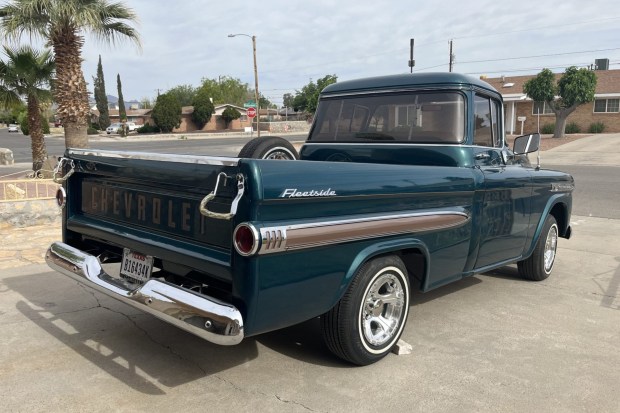 This 1959 Chevrolet Apache 3100 fleetside pickup was purchased new by the seller’s father and has since remained with the family. It is finished in metallic blue over beige cloth and is powered by a 283ci V8 paired with a three-speed manual transmission. Equipment includes 15″ Dick Cepek wheels, Gabriel Hijackers rear shocks, a wood bed floor, chrome bumpers, and air conditioning. This Task Force pickup is offered by the seller on behalf of their son with a clean Texas title in the owner’s name.