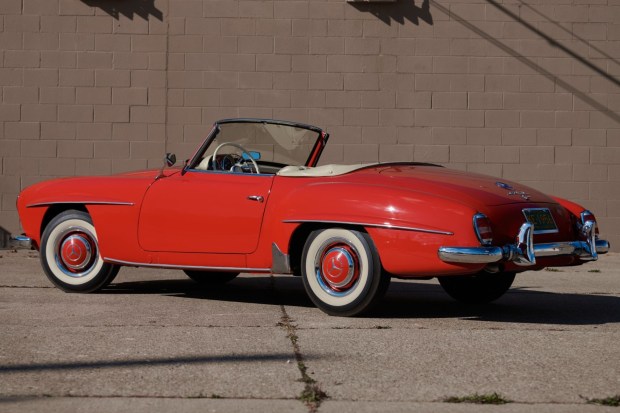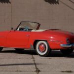 This 1959 Mercedes-Benz 190SL is powered by a 1.9-liter inline-four paired with a four-speed manual transmission and finished in Fire Engine Red over Cream leather. Features include a tan convertible top, 13″ steel wheels with body-color hubcaps, a rear sideways-facing jump seat, dual Mikuni carburetors, and a Becker Europa radio. The car was refurbished between 1989 and 1991 and acquired by the current owner in 2022. It is now offered on their behalf with manufacturer’s literature, service records, removed spare parts, and a clean Michigan title.