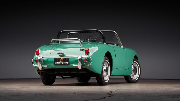 This 1960 Austin-Healey Bugeye Sprite was built in October 1959, and it was acquired by the current owner in 2020. Finished in green over green vinyl, the car is powered by a 948cc inline-four paired with a four-speed manual transmission. Equipment includes a black soft top, removable side curtains, 13″ steel wheels, a luggage rack, a wooden shift knob, and bucket seats. The speedometer and tachometer were rebuilt following the owner’s 2020 purchase, and a compression test was performed in preparation for the sale. This Bugeye Sprite is now offered on consignment at no reserve by the selling …