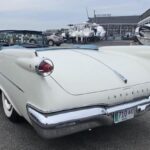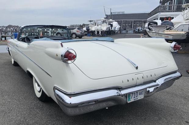 This 1960 Imperial Crown convertible is one of 618 examples produced for the model year. It was sold new at the Leach Motor Company of Fresno, California, and was refurbished under previous ownership at Hibernia Auto Restorations of Hibernia, New Jersey. Powered by a 413ci V8 linked to a push-button three-speed automatic transmission, the car has been refinished in Alaskan White with a power-operated blue convertible top over a blue leather interior. Features include power steering, power brakes, independent front suspension, wheel covers, whitewall tires, a four-barrel carburetor, and a dual exhaust system as well as automatic swiv …