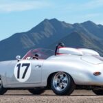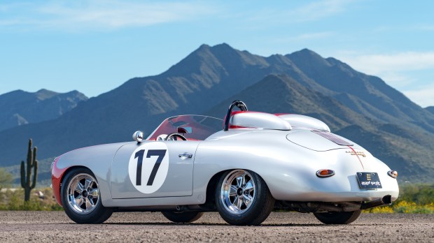 This 1960 Porsche 356B Roadster was used as a track car under prior ownership, competing in the 1989 Monterey Historics and 1990 Wine Country Classic at Sears Point International Raceway. After being acquired by the current owner in 2008, the car was modified with dual headrest fairings, a cut-down windscreen, and a twin-plug 1,720cc flat-four. The four-speed manual transaxle was rebuilt in 2022, and additional equipment includes 15″ Fuchs-style wheels, four-wheel disc brakes, a roll hoop, a fuel cell, fixed-back bucket seats with harnesses, an aftermarket shifter, and a GT-style exhaust system …
