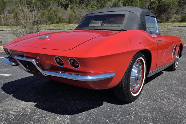 This 1962 Chevrolet Corvette was repainted red in 2005, at which time a replacement 350ci V8 was installed, according to the selling dealer. It is equipped with a two-speed automatic transmission, a black convertible top, chrome bumpers, a Wonder Bar AM radio, an aftermarket center console, a Be Cool aluminum radiator, and a dual exhaust system. The painted 15″ wheels wear chrome covers and thin-whitewall radial tires, and they are mounted over four-wheel drum brakes connected to a master cylinder that was replaced in 2025. This C2 Corvette was acquired by the selling dealer in 2026 and is now offer …
