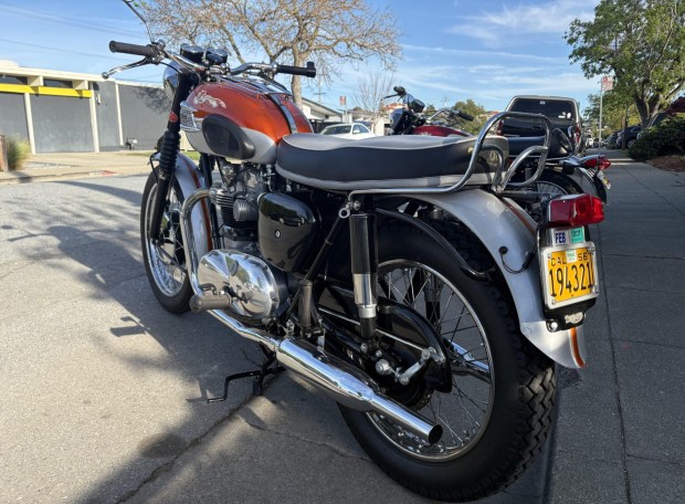 This 1962 Triumph Bonneville T120R was acquired in 2014 by the seller, who tells us that the motorcycle was refurbished with work that included installing Surflex clutch plates, rebuilding the four-speed gearbox with a Slick Shift mechanism, fitting the air-cooled 649cc parallel-twin with a replacement cylinder barrel assembly and Hepolite pistons, rebuilding the cylinder head with replacement valves and Colsibro valve guides, and more as described below. Repainted in orange and silver with black side panels, the bike features a kick starter, a pair of Amal 376 carburetors, John Tickle float bowl extensions, Rare Spares chain cases, a John Tickl …