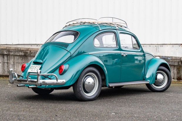 This 1964 Volkswagen Beetle is said to have remained in California with two owners, the second of which carried out a refurbishment in 2013 that included painting the bodywork in green, reupholstering the interior in brown and tan, refinishing the wheels, and installing a custom chrome and wood roof rack. Additional work included overhauling the brakes and suspension, applying Dynamat material, and replacing the bumpers, seals, weatherstripping, and steering wheel. Power is from a 1.2-liter flat-four paired with a four-speed manual transaxle, and further equipment includ …