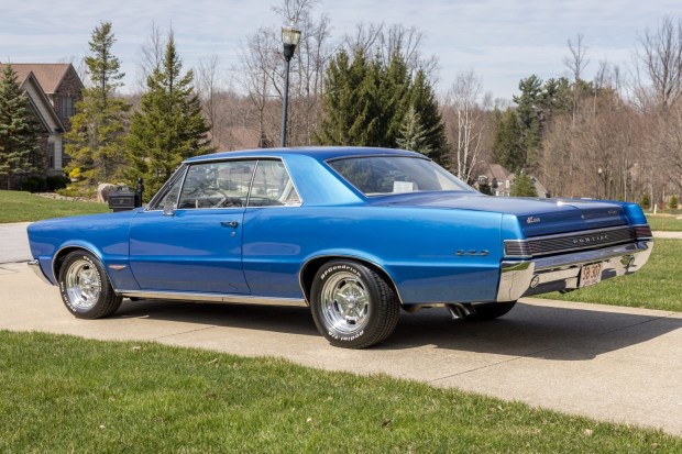 This 1965 Pontiac GTO hardtop coupe was purchased by the seller in 2015 and underwent a multi-year refurbishment, which included refinishing the body in Barrier Blue and re-trimming the cabin in Parchment vinyl upholstery. The 400ci V8 was overhauled and fitted with a Tri-Power induction setup, a replacement wiring harness, and a COMP camshaft during the build, and a revised Muncie four-speed manual transmission was installed along with a PosiTraction differential, four-wheel disc brakes, and quick-ratio power steering. The cabin is appointed with a center console, a Hurst shifter, a retro-look Bluetooth receiver, and woodgrain trim. This GTO hardtop is now offered with PHS Auto …