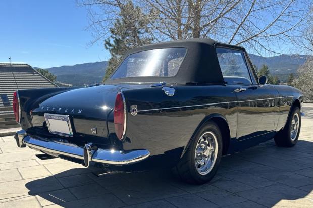 This 1965 Sunbeam Tiger Mk 1 was refurbished around 2008 by Rootes Group Depot of Menlo Park, California, with work that involved overhauling the suspension, braking, cooling systems. Powered by a 260ci V8 linked to a four-speed manual transmission, the car is finished in black over red leather. Equipment includes LAT 70–style 13″ wheels, a black convertible top, a black removable hardtop, front disc brakes, PerTronix electronic ignition, a 2″ dual exhaust system, a wood-rimmed steering wheel, a woodgrain dash fascia, and a center console. The selling dealer acquired th …