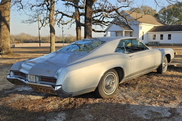 This 1966 Buick Riviera was purchased new by a distant relative of the seller from Brewbaker Motors of Montgomery, Alabama, and it was acquired by the seller’s father in 1979. The car is finished in silver over blue cloth and vinyl upholstery, and it is powered by a 425ci V8 paired with a three-speed automatic transmission. Equipment includes knock-off-style wheel covers, power-assisted brakes, power steering, air conditioning, and bench seating. The car has been in long-term storage for the past decade, and the battery and tires were replaced in 2025. This Riviera is now offered by the seller on behalf of th …