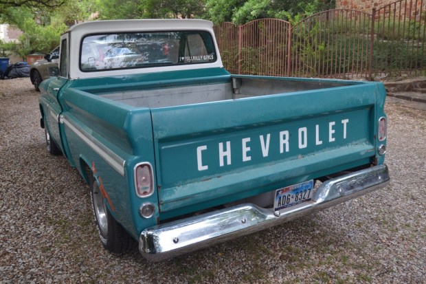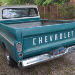 This 1966 Chevrolet C10 Fleetside pickup was acquired by the current owner in 2010 and underwent a mechanical refurbishment in 2023 that included rebuilding the front suspension, relocating the fuel tank to beneath the bed, and replacing the carburetor, engine mounts, radiator hoses, power steering hoses, ignition wires, U-joints, rear wheel cylinders, and shocks. Powered by a replacement 350ci V8 paired with a three-speed manual transmission, the truck is finished in teal and white over color-coordinated upholstery. Additional equipment includes an Edelbrock four-barrel carburetor, a wood bed floor, dual side mirrors, an aftermark …