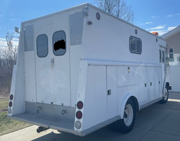 This 1966 Ford P-500 features Lyncoach bodywork and is said to have been used by the Fayette, Ohio, fire department until the 1990s. The aluminum panels are finished in white and sit on a parcel delivery chassis powered by a 300ci inline-six linked to a four-speed manual transmission. Equipment includes 19.5″ wheels, drum brakes, a folding passenger door, ambulance-style rear doors, equipment cabinets, a receiver hitch, emergency lights, a driver seat, internal storage, and front and rear heaters. This step van is now offered at no reserve with a clean Michigan title.