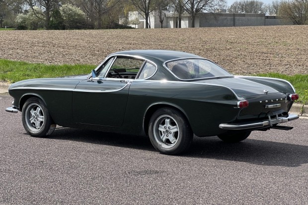 This 1966 Volvo 1800S was refinished in green in the late 1990s while owned by a friend of the current owner, at which point the chrome trim was reconditioned, and later-model Volvo front bucket seats were installed. The car is powered by a 1.8-liter inline-four mated to a four-speed manual transmission with overdrive, and equipment includes alloy wheels, four-wheel disc brakes, chrome wrap-around bumpers, and front vent windows. The seats are upholstered in off-white leather, and the cabin is appointed with Smiths instrumentation, a heater, and a wooden shift knob. Work in August 2025 included repla …