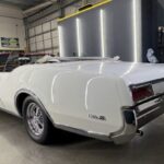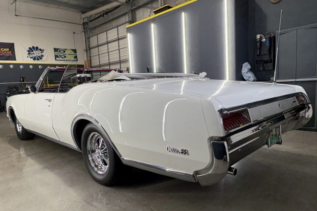 This 1967 Oldsmobile Delta 88 convertible was acquired out of California by the seller’s sister and brother-in-law from its original owner in 1994. Finished in Provincial White with a white convertible top over red vinyl upholstery, the car is powered by a high-compression 425ci Super Rocket V8 linked with a three-speed automatic transmission. Equipment includes Cragar 15″ wheels, power-assisted brakes, power steering, power windows, an AM/FM radio, air conditioning, tilt steering, and woodgrain interior trim. The soft top was replaced in February 2026. This Delta 88 is now offered by the seller on behalf of the owners with a build sheet, an own …