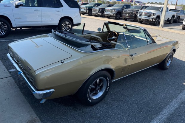 This 1967 Pontiac Firebird 400 convertible was refurbished in 2011 with work that involved the installation of a rebuilt 400ci V8 that is linked to a three-speed automatic transmission. The body was refinished in gold and the ivory soft top was replaced, while the engine was outfitted with a Lunati camshaft, an aluminum intake manifold, and a Mallory distributor. Inside, the front bucket seats and rear bench are trimmed in gold vinyl and accompanied by a center console, a Custom Autosound stereo, and a Vintage Air climate control system. Additional equipment includes a hood-mounted tachometer, a Summit Racing ignition contr …