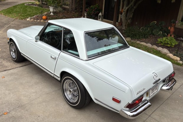 This 1968 Mercedes-Benz 280SL was delivered from the factory in Silver Gray Metallic with a Blue Metallic hardtop and blue upholstery. Acquired by the seller’s father around 1993, it has been repainted solid white and fitted with wire-spoke wheels as well as a custom sound system. The car is further equipped with a 2.8-liter inline-six paired with a four-speed automatic transmission, a blue convertible top, and air conditioning. Driven around 4k miles by the seller’s father, this W113 SL is now offered by the seller on behalf of their family with service records, a car cover, a hardtop stand, and a clean O …