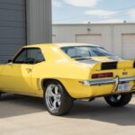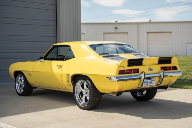 This 1969 Chevrolet Camaro coupe was purchased in 2025 by by Pat Musi, drag racing champion and owner of Pat Musi Racing Engines of Mooresville, North Carolina. It is powered by a 350ci V8 linked to a four-speed manual transmission and a 12-bolt rear end. The body is finished in yellow with black stripes and features front and rear spoilers, bumper guards, and SS badging. Inside, front bucket seats and a rear bench are trimmed in black vinyl and accompanied by a center console, a digital stereo, and woodgrain trim. Additional equipment includes a Holley four-barrel carbu …