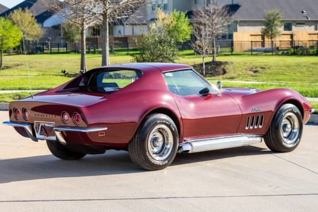 This 1969 Chevrolet Corvette coupe is powered by a 427ci L71 V8 paired with a four-speed manual transmission. The car was refurbished under previous ownership and refinished in Burgundy in preparation for the sale. Equipment includes a Positraction limited-slip differential, removable roof panels, 15″ Rally wheels, four-wheel disc brakes, power steering, side-exit exhaust pipes, a heater, an AM/FM radio, chrome bumpers, and hideaway headlights. This C3 coupe was purchased by the seller in 2025 and is now offered in Texas with a clean Montana title in the name of the seller’s LLC.
