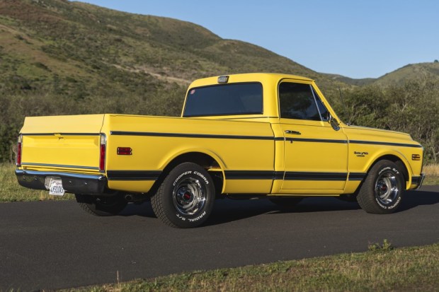 This 1969 GMC C1500 Custom pickup was retrofitted with a BluePrint Engines 383ci V8 and a Holley carburetor in February 2026, and it is said to have been previously refurbished in 2018, when it received a repaint in its current shade of yellow. The cabin features a bench seat trimmed in black vinyl along with matching carpeting, as well as a center console, air conditioning, three-point seatbelts, and a retro-look stereo. The truck is also equipped with a three-speed automatic transmission, 15″ Rally wheels, power-assisted front disc brakes, power steering, a dual exhaus …