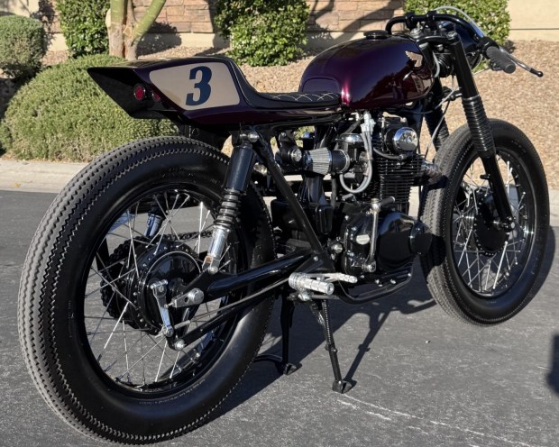 This 1969 Honda CL350 Scrambler was acquired by the seller in 2018 and underwent a rebuild as a cafe racer in a project that was completed in 2026 and included powertrain and electrical work performed by Charlie’s Place of Glendale, California. The modified fuel tank and racing-style tail section were finished in House of Kolor Brandywine, and the 325cc parallel-twin was rebuild with .25mm-over Wiseco pistons, Kibblewhite valve components, a modified camshaft, a custom stainless-steel exhaust system, an electronic ignition module, and a custom wiring harness. The bike also has a clubman handlebar, a diamond-stitch …
