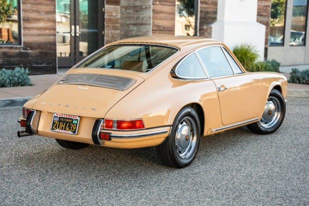 This 1969 Porsche 912 coupe was originally finished in Olive, but was repainted in Sand Beige under previous ownership, and it features tan leatherette upholstery. Power is from a 1.6-liter flat-four mated to a five-speed manual transaxle, both of which sport serial numbers that match what is listed on the Porsche Certificate of Authenticity. The car also has 15″ perforated steel disc wheels, disc brakes, bright bumper guards, bucket seats, and a heater. This 912 coupe was acquired by its current owner in 2020 and is now offered on dealer consignment with a Porsche Certificate of Authenticity, the owner’s manual, …