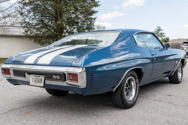 This 1970 Chevrolet Chevelle Malibu sport coupe was purchased by the seller’s parents in 2001, and it has been in storage for approximately 10 years. Power is provided by a replacement 454ci V8 linked to a TH400 three-speed automatic transmission and a limited-slip differential, and a removed 402ci V8 will accompany the car. The body was repainted in blue with white stripes years ago, and features include a cowl hood, SS badging, and dual side mirrors. Inside, the front and rear bench seats are trimmed in blue vinyl and cloth, and an AutoMeter tachometer and auxiliary gauges have been added. Modifications include an aluminum intake manifold and …