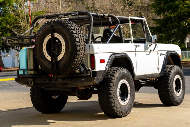 This 1971 Ford Bronco was the subject of an off-road build under prior ownership that involved the installation of a modified 351ci Windsor V8 with electronic fuel injection as well as a suspension lift with Wild Horses springs and dual shocks at each corner. The body is finished in white with a red cowl hood, black wheel-arch flares, and fabricated steel bumpers that are equipped with a front bull bar, D-rings, a rear swing-away tire carrier, and a swing-away Jerry-can storage rack. The interior is surrounded by a family roll cage and features Corbeau bucket seats, dual …