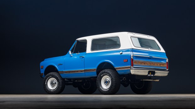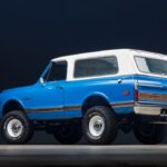 This 1972 Chevrolet K5 Blazer CST 4×4 underwent a body-off refurbishment in 2023, which included a repaint in blue, powdercoating the frame, and reupholstering the interior with white vinyl and plaid fabric. The replacement 350ci V8 and three-speed automatic transmission are said to have been rebuilt at that time, and a Holley fuel injection system, an aluminum radiator, a dual exhaust system with Flowmaster mufflers, a RetroSound stereo, and an Old Air air conditioning system were added. Additional work included powder coating the 15″ steel wheels, refreshing the brakes and suspension, and installing Sk …