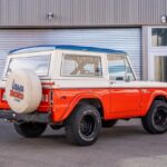 This 1972 Ford Bronco is one of a limited number of Baja models built by Ford from 1971 to 1975 to commemorate victories in the Baja 500 and Baja 1000 by Bill Stroppe-prepared Broncos. It was refinished in the orange, blue and white Stroppe livery, over parchment vinyl upholstery, during a refurbishment carried out from 2007 to 2009. Its 302ci V8 was rebuilt at that time, and power is transferred to the wheels through a C6 three-speed automatic transmission, a dual-range transfer case, and a rear axle with a Traction-Lok limited-slip differential and …