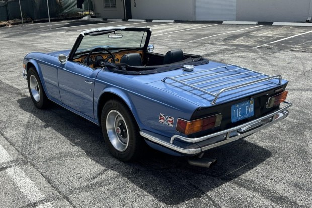 This 1972 Triumph TR6 remained registered with its previous owner of 27 years until it was listed on BaT in May 2025, and it was subsequently acquired by the seller. Between 2018 and 2023, the car was refurbished and customized by British Car Service of Tucson, Arizona. The body was stripped and repainted French Blue, and the wheels, windshield post, and suspension pieces were also refinished. Polyurethane bushings were installed for both the suspension and driveline, the luggage rack and overrider bumpers were re-plated, and a Robbins blue canvas top was fitted. An SU HS6 carburetor conversion kit and spin-on oil filter conversion were installed for the 2.5-liter inline-six, and the four-speed man …
