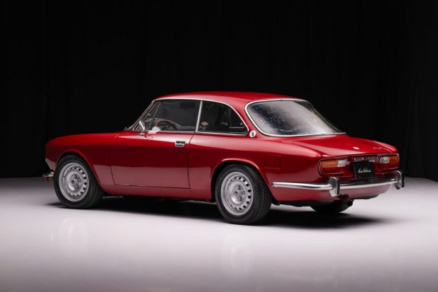 This 1973 Alfa Romeo GTV 2000 was repainted in the Ferrari shade of Rosso Rubino and fitted with a 3.0L 12V Busso V6 as part of a build completed by Alfa Performance Connection from July 2024 to January 2026. The car rides on 15″ Alfaholics GTA-style wheels coupled with Koni shocks at all four corners and is equipped with four-piston brake calipers over two-piece rotors up front. Inside, the refreshed cabin houses black vinyl–trimmed seats along with a wood-rimmed steering wheel and air conditioning. The fuel-injected engine is managed by a Gotech E …