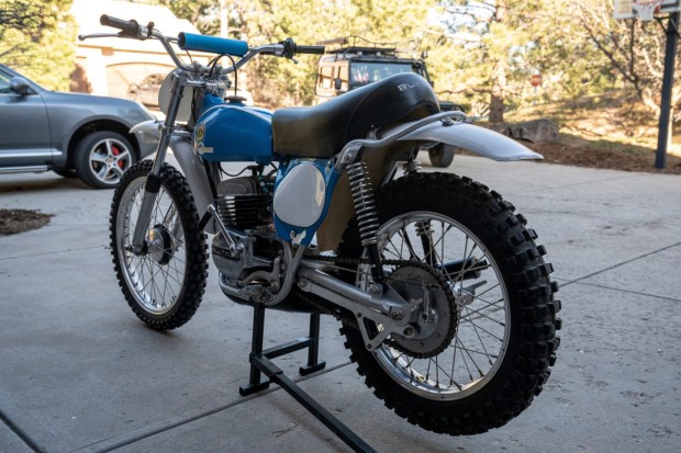 This 1974 Bultaco Pursang 250 Mk 7 spent time in Colorado before being acquired by the seller on BaT in January 2025. Subsequent service is said to have involved installing a 36mm Mikuni carburetor and a side-pull throttle with a Magura cable as well as fitting the air-cooled 244cc two-stroke single with a replacement flywheel, stator, ignition coil, crankshaft bearings, felt washers, O-rings, gaskets, and seals. Finished in blue and white, the motorcycle is further equipped with a kick starter, a black-finished exhaust system, a telescopic fork, aftermarket NJB rear shocks, drum brakes, laced wheels with Akront rims, and a silver half-duplex frame as well as a black saddle, a …
