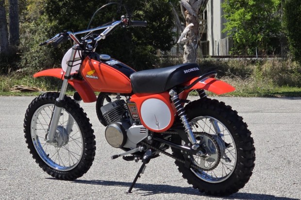This 1974 Honda MR50 Elsinore was said to be refurbished by its second owner in the summer of 2025 and acquired by the current owner in the fall of 2025. The bike is powered by a 49cc two-stroke single paired with a three-speed transmission. It is finished in Daytona Orange with black tank stripes, and equipment includes wire-spoke wheels with chrome rims, a black vinyl solo seat, a high-mount exhaust system, a kick starter, a Keihin carburetor, a skid plate, a chrome cross-braced handlebar, front and side number plates, high-mounted fenders, and a side stand. This M …