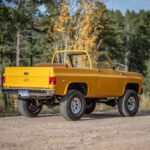 This 1975 Chevrolet K5 Blazer was refurbished under previous ownership, and it was purchased by the seller on Bat in February 2022. The truck is finished in yellow over brown and tan leather and is powered by a 350ci V8 paired with a three-speed automatic transmission and a dual-range transfer case. Modifications include an Edelbrock aluminum intake manifold, aluminum cylinder heads, an Edelbrock carburetor with an electric choke, Hedman exhaust headers, an HEI distributor, and an aluminum radiator with dual electric cooling fans. Equipment includes 16″ Mickey Thompson wheels, locking front hubs, front disc brakes, Tuff Country shocks, power steering, a white removable hardtop, power windows, a PA system, and a Sony touchscreen stereo with smartphone integration, which is linked to an aftermarket sound system. This K5 Blazer is now o …