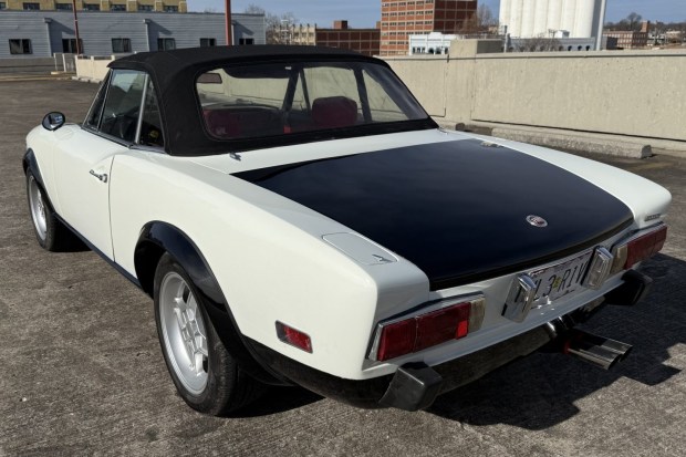 This 1975 Fiat 124 Sport Spider was purchased by the seller in 2023, and a subsequent 2.5-year build reportedly included over $19k in parts. It is powered by a rebuilt 1.8-liter inline-four paired with a five-speed manual transmission and finished in white and black over red vinyl. Equipment includes a black convertible top, 15″ cross-style wheels, four-wheel disc brakes, a custom aluminum dashboard, and a retro-style Bluetooth stereo. This 124 Sport Spider is now offered with the factory wood dashboard trim and steering wheel, spare parts, documentation of the build process, and a Missouri title in the seller’ …