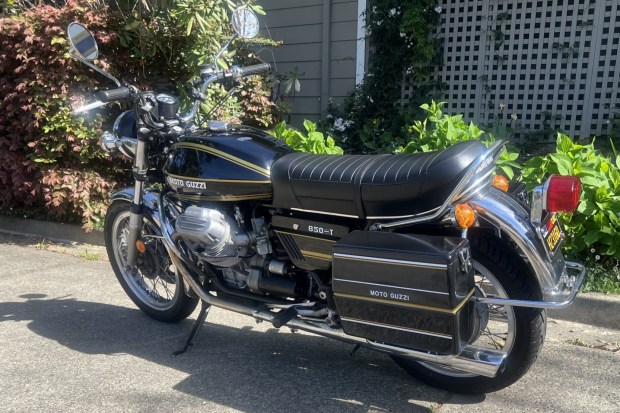 This 1975 Moto Guzzi 850-T spent over three decades with its previous owner before being acquired by the seller on BaT in January 2022. Subsequent refurbishment work totaling over $15k included repainting the bodywork in the factory shades of black and gold, fitting the air-cooled 844cc V-twin with replacement Gilardoni cylinders and pistons, and overhauling the cylinder head and Veglia Borletti instrumentation as well as installing a Lafranconi dual exhaust system, re-soldering a wiring harness, and replacing the headlight housing, two-up seat, horns, turn signals, air filters, fuel petcocks, and more as described below. The bike rides on a Telehydraulic conventional fork with replacement seals in addition to dual re …