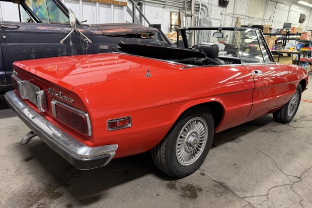 This 1976 Alfa Romeo 2000 Spider Veloce was repainted in red in 2024 and features an earlier-style grille and bumpers. Power is provided by a 2.0L twin-cam inline-four with electronic ignition and European two-piece exhaust manifolds, while shifting is through a five-speed manual transmission linked to a limited-slip differential. Additional equipment includes a black convertible top, H4 headlights, 14″ cast alloy wheels, power-assisted disc brakes, a wood-rimmed Personal steering wheel, and Jaeger instrumentation. This S2 Spider was acquired by the seller in 2021 and is now offered at no reserve in Rhode Island with a clean Massachusetts title in the seller’s name.