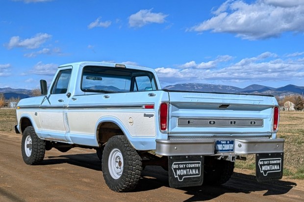 This 1976 Ford F-150 Ranger is said to have remained with its original owner until 2009, when it was purchased by its previous owner, who installed a replacement 390ci V8. The truck is said to have spent the majority of its life in Montana and was purchased by the seller in 2025. Subsequent work has included the replacement of the rear axle housing, front coil springs, suspension bushings, tires, and brake cables. The truck is finished in Bali Blue and white over a blue vinyl interior, and it is equipped with a three-speed automatic transmission, a dual-range transfer cas …