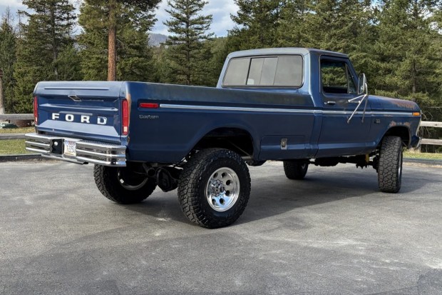 This Midnight Blue Metallic 1976 Ford F-250 Custom 4×4 features a 460ci V8 swap with a mild cam, ported heads, and a Holley 750 CFM carburetor. The truck was ordered with a four-speed manual transmission, a limited-slip rear differential, power steering, a bedside toolbox, a sliding rear window, and bright bodyside moldings. Other details include 17″ American Racing wheels, 34″ Toyos, front disc brakes, and a push-button AM radio. The vehicle was acquired in 2025 by the seller, who reports that work in preparation for the sale included overhauling the transmission, replacing exterior elements, re …