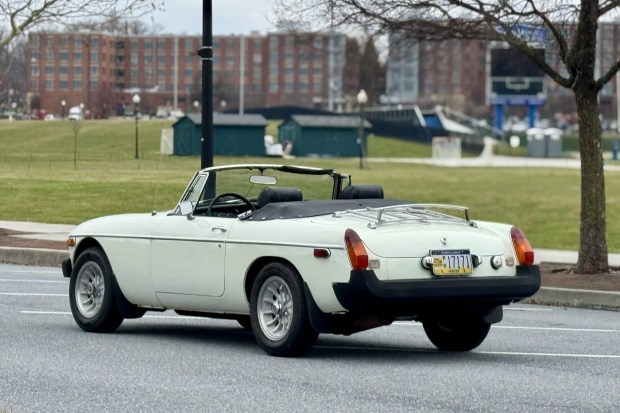 This 1976 MGB roadster project was acquired by the selling dealer in 2018, and subsequent work included replacing the convertible soft top, both floor pans, the clutch hydraulics, air cleaners, tires, and assorted braking and cooling system components. Finished in white over black vinyl, the car is powered by a 1.8-liter inline-four paired with a four-speed manual transmission. Equipment includes 14″ aftermarket alloy wheels, a luggage rack, door-mounted mirrors, and a heater. The car runs and drives, but the overdrive unit is inoperative, the carburetors will require tuning, the front suspension bushings are worn, and the interior is partially disassembled. …