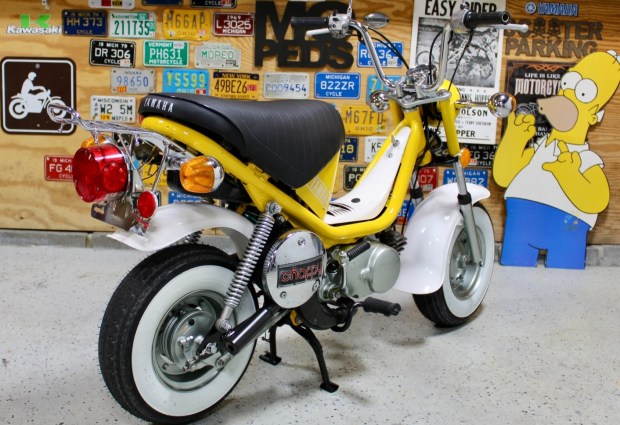 This 1976 Yamaha Chappy LB80 was acquired by the seller in 2024, and work in the fall of 2025 included clearcoating the yellow paint, refinishing the engine and assorted black components, recovering the solo seat, cleaning the carburetor, and replacing the fenders, tires, fuel lines, headlight, mirrors, and more. Powered by a 72cc two-stroke single paired with a dual-range two-speed automatic transmission, equipment includes a kick starter, Autolube oil injection, a chrome cargo rack, street lighting, full suspension, 8″ multi-piece wheels, and a side stand. This Chappy LB80 is now offered at no reserve with a Michigan registra …
