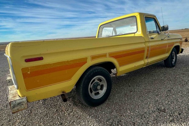 This 1977 Ford F-100 4×2 is one of 23 specified with its paint and trim codes. Delivered new to La Junta, Colorado, it was ordered with Bright Yellow paint over a black interior, and it was optioned with Ranger and Free Wheeling packages. The vehicle was not registered for more than 20 years before it was acquired by the seller in 2021. Its 351ci V8 is paired with a three-speed automatic, and the truck has power steering, dual fuel tanks, and 15″ styled alloy wheels. Work in preparation for the sale included reconditioning its fuel syste …