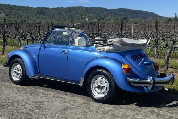 This 1978 Volkswagen Super Beetle convertible is one of approximately 1,100 Champagne II edition examples produced for the 1978 model year and was sold new at North Valley Volkswagen of Chico, California. The car was purchased by the seller’s father in 2016, and it now shows 29k miles. It is powered by a 1.6-liter flat-four paired with a four-speed manual transaxle and is finished in Ancona Blue Metallic over Parchment leatherette. Champagne II examples included Lemmerz sports wheels, a padded steering wheel with an embellished horn pad, burled elm veneer dashboard trim, a Quartz clock, a heated rear window, a …