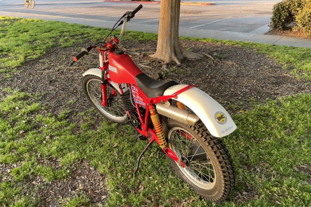 This 1983 Fantic Trial 240 Professional is an observed trials bike that is powered by a 212cc two-stroke single paired with a six-speed transmission. It wears red and white plastic bodywork and is equipped with a Marzocchi fork, Falcon shocks, Akront alloy rims, aluminum conical hubs, a skid plate, a Dell’Orto carburetor, and an expansion-chamber exhaust system. This Fantic 240 was purchased by the seller in 2021 and is now offered at no reserve in California for off-road use only with removed and spare parts, a parts manual, schematics, and a bill of sale.